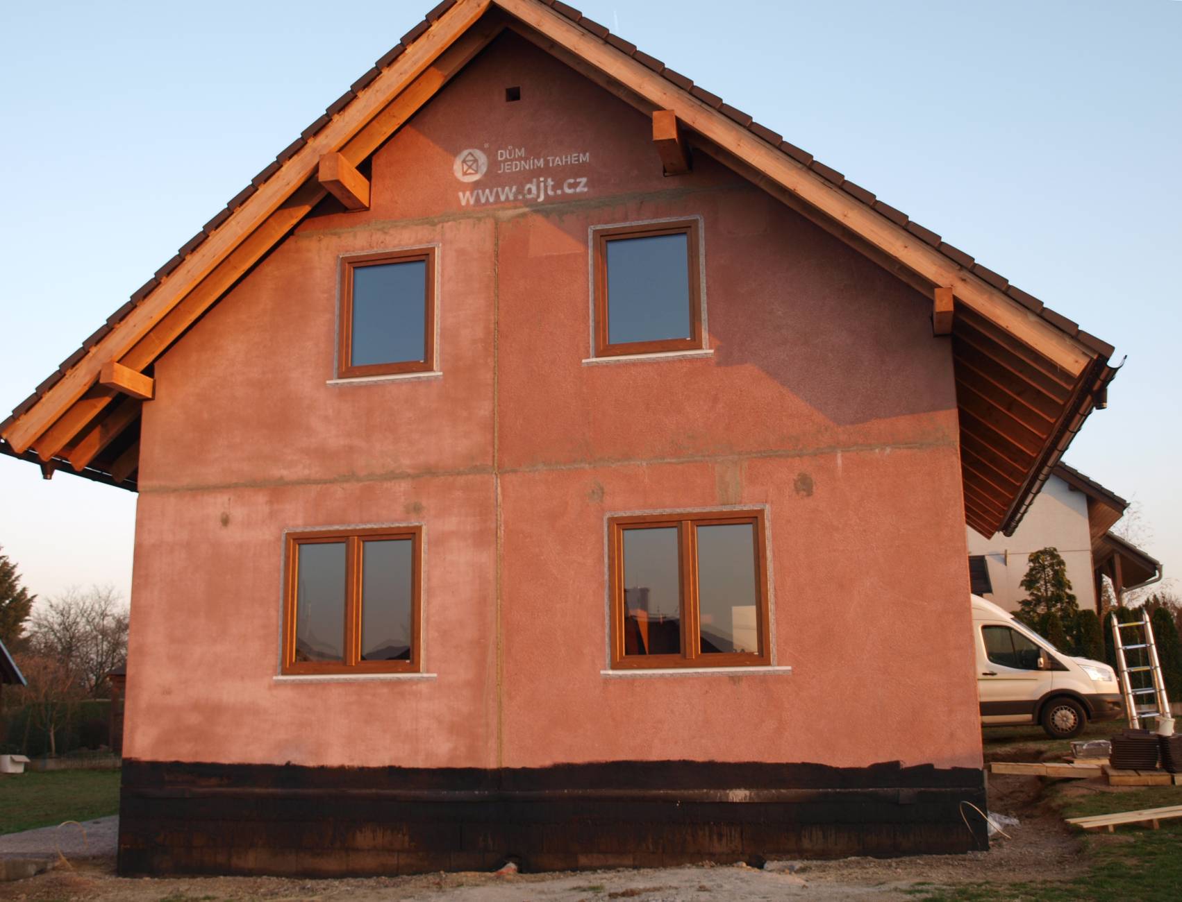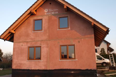 Stavět se začalo 14.9.2018. Stavbu vedl p. Bareš, který byl také velmi ochotný při naší veškeré komunikaci. Firma DJT zajistila i základovou desku, za což jsme byli rádi, jelikož jsme stavěli na svažitém pozemku, sami bychom si na to netroufli. Vše ostatní šlo následně podle harmonogramu, všichni pracovníci, kteří se na jednotlivých částech stavby střídali dle profesí, byli ochotní a šikovní. Měli jsme štěstí, že nám přálo i počasí. Dům jsme převzali 16.11.21018. Při převzetí domu jsme pouze reklamovali okno, ale to už nás firma sama předem informovala, že se okno bude měnit a také se řešila neprůchodnost 2 plastových krků pro protažení kabelů. Vše se bez problému vyřešilo. To také oceňuji. To, že se vyskytne v průběhu stavby nějaký drobný problém, se může stát komukoliv, firma DJT řeší opravy ochotně.