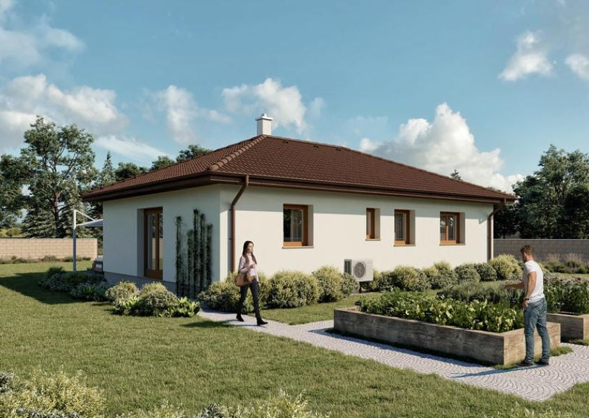 Středně velký bungalov Nemesis nabízí pohodlné bydlení pro 4 osoby na 89 m2 ve 4 pokojích. Stejně jako u ostatních přízemních domů si lze i u Nemesis zvolit variantu se sedlovou nebo valbovou střechou. Snadno tak vyhoví územním či regulačním plánům i vašim osobním preferencím.