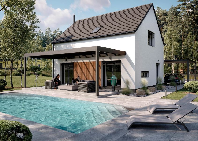 Rodinný dům Niké nabízí bydlení pro 4člennou rodinu na více než 124 m2 podlahové plochy s promyšlenou dispozicí. Ta využívá doslova každý centimetr pro maximální komfort obyvatel domu. Kromě 4 pokojů nabízí i dostatek úložných prostor nebo pracovnu.