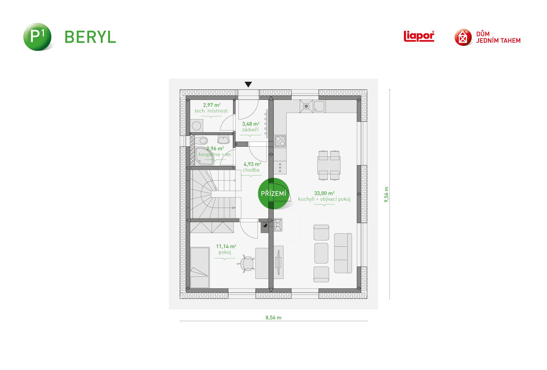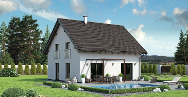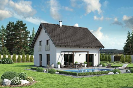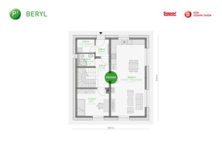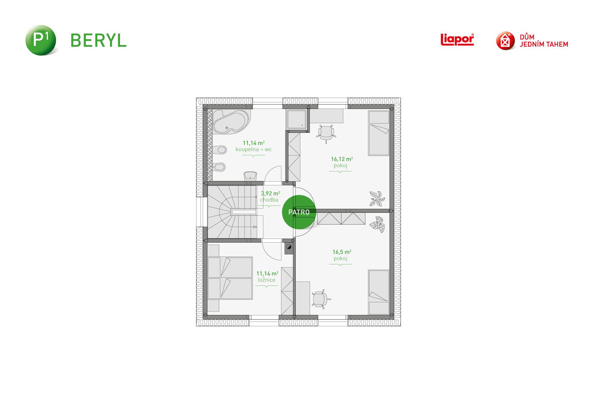Rodinný dům P1 Beryl je patrový dům se sedlovou střechou a klasickým dřevěným krovem. Díky své dispozici je vhodný pro 4-5 člennou rodinu.