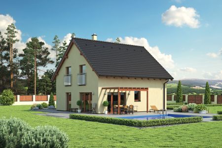 Titan je střední dům, který se hodí pro 4člennou rodinu. Jedná se o "klasický" rodinný dům se sedlovou střechou se sklonem 14 °. Nosná konstrukce střechy je navržena z dřevěných vazníků, které jsou uložené na obvodové stěny.