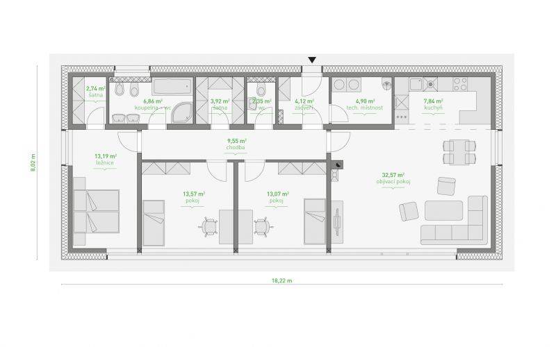Pro stavbu rodinného domu Xenon v pasivním a nízkoenergetickém standardu je nutné, aby pozemek investora umožňoval umístění vstupu domu na sever.