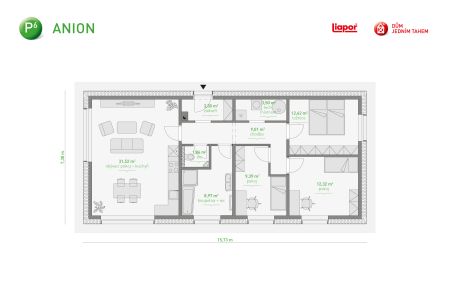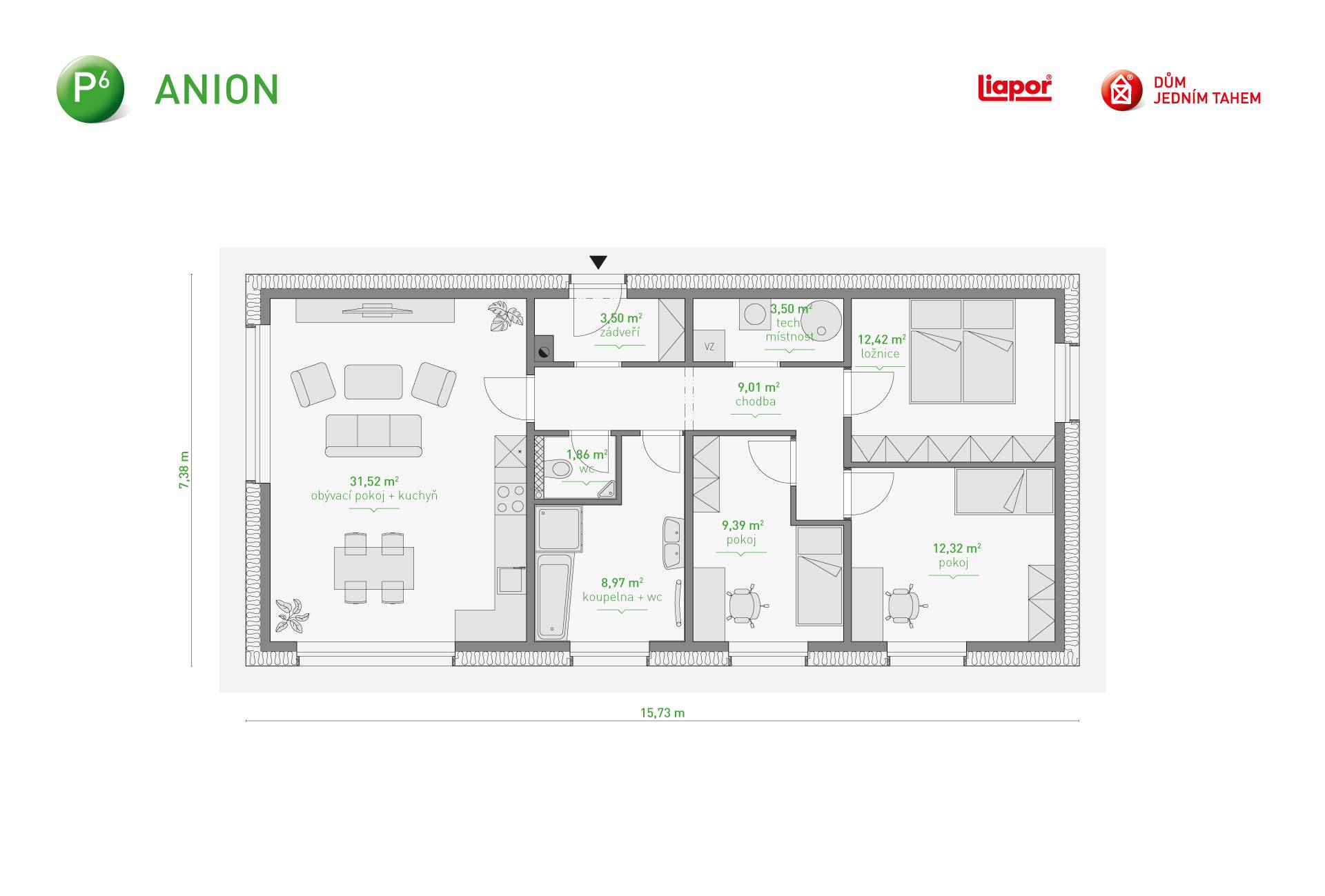 Anion je menší přízemní rodinný dům s podélným dispozičním řešením, který bude skvěle vyhovovat až 4členné rodině. Postavíme jej pro vás jak v pasivním, tak i nizkoenergetickém standardu.