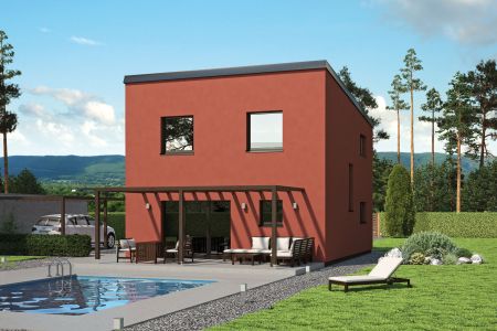 Patrový rodinný dům GALI se vyznačuje účelným architektonickým řešením, k němuž patří pultová střecha s mírným sklonem 7°.