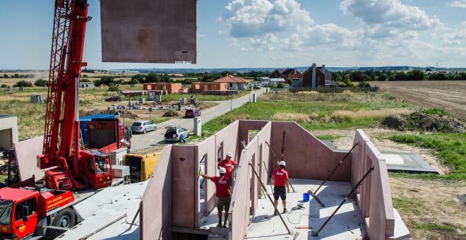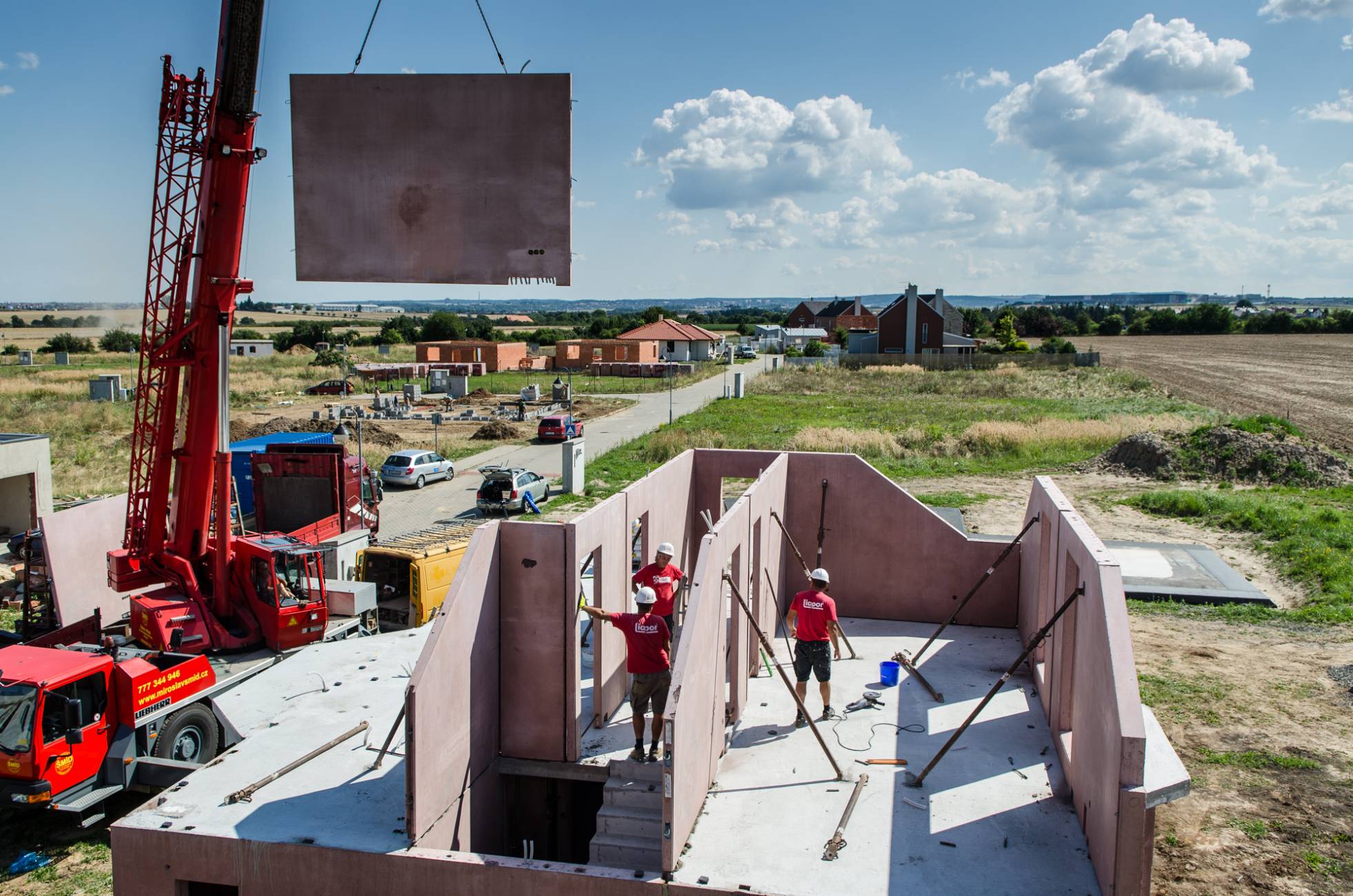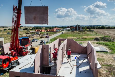 Další velkou úsporu času přináší vytrubkování a krabičky pro elektroinstalaci i drážky pro rozvody vody a plynu, které jsou již z výroby připravené v jednotlivých dílcích. Rozvedení sítí po domě je tak mnohem méně náročné, než třeba u cihelných domů. Keramický beton je také snadno opracovatelný, takže ani případné dodatečné úpravy rozvodů v rozestavěném domě nepředstavují problém. Montovanou stavbu z keramického betonu oceníte i při realizaci omítek. Každý z dílců prochází přísnou kontrolou kvality. Stěny jsou z jedné strany hladké od formy, z druhé ručně hlazené. Díky tomu není potřeba dělat omítky. Stačí tenkovrstvé sádrové stěrky, což pomáhá šetřit čas i náklady.