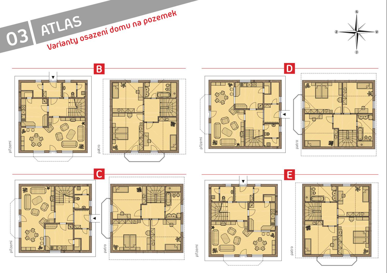 Každý typový projekt má několik variant osazení na pozemek