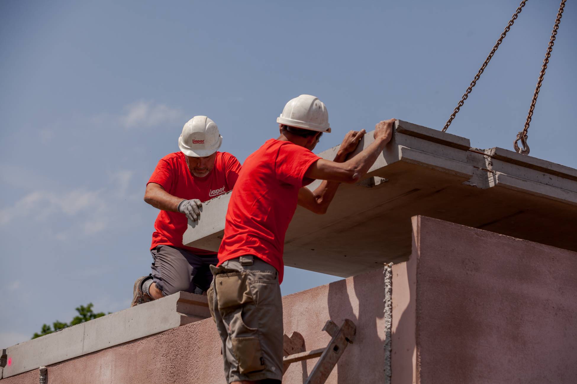 Domy jedním tahem stavíme z velkoplošných dílců z lehkého keramického Liaporbetonu. Ale není beton jako beton! Při porovnání s běžným betonem má tento ve své podstatě keramický materiál skvělé tepelněizolační vlastnosti a v domě zajišťuje příjemné klima v zimě i v létě podobně, jako tomu je třeba u cihlových domů.