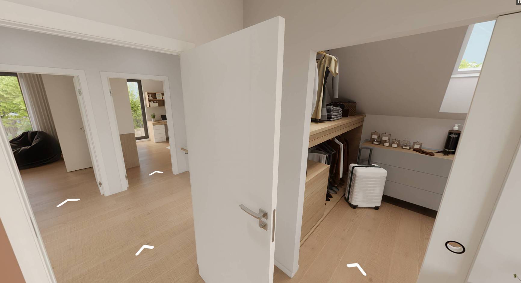 Druhá z nových prohlídek určitě potěší všechny, kdo už naše domy z řady Klasik znají. Je to totiž prohlídka domu 23 Niké, který jsme jako novinku uváděli do nabídky v roce 2024 a který se velmi rychle zařadil mezi naše nejoblíbenější patrové domy. Tento dům si získal srdce mnoha klientů díky svému nadčasovému vzhledu a praktickému uspořádání vnitřního prostoru i zajímavé ceně.